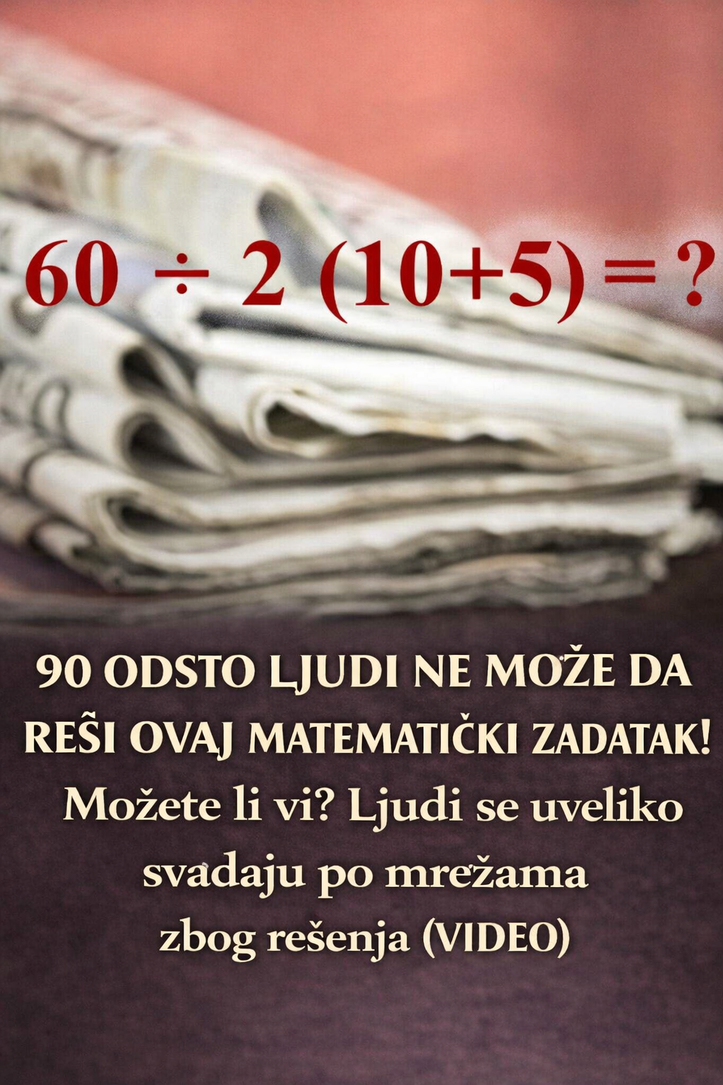 - Na prvi pogled sve djeluje vrlo jednostavno. Radi se o kratkoj matematičkoj formuli koja izgleda kao nešto što se uči još u osnovnoj školi. Međutim, upravo zbog te prividne jednostavnosti mnogi ljudi naprave grešku već u prvom koraku. Zadatak glasi: