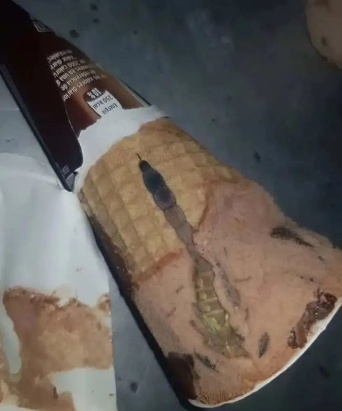 - Dok je djevojčica uživala u svom sladoledu, njeno lice je iznenada postalo ozbiljno. Uz malo nesigurnosti, pozvala je majku, koja je odmah prepoznala da se nešto neobično dogodilo. Unutra u sladoledu, među hrskavom vafl koricom, našla se iznenađujuća stvar – smrzuti škorpion. Njegovo ukočeno tijelo, sa jasno vidljivim kleštima i repom, šokiralo je obitelj. Umjesto da se paniči, majka je odlučila da ostane pribrana i zajedno sa kćerkom pažljivo pregleda sladoled, shvatajući da je škorpion vjerovatno završio u proizvodnji zbog nepažnje.