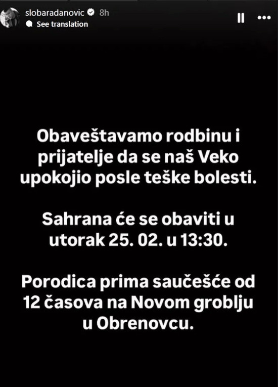Ovaj gubitak nije samo emotivni ožiljak za Slobu, već i za sve one koji su poznavali Veljka, čija je energija i prisustvo ostavila neizbrisiv trag u životima mnogih. Slobina emotivna ispovest može poslužiti kao podstrek svima koji se suočavaju sličnim gubicima. Njegova hrabrost da otvoreno deli svoja osećanja može biti inspiracija mnogima, podsećajući nas na važnost izražavanja emocija i otvorenosti prema onima koje volimo. Nakon što je podelio svoja osećanja, Sloba je najavio i poslednji ispraćaj Veljka, koji je bio prilika za prijatelje, porodicu i sve poznanike da mu odaju počast.