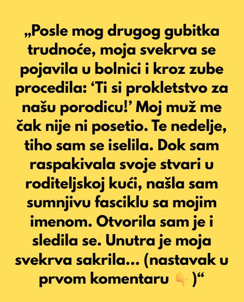 Te noći, prvi put je zaplakala. Ne zbog riječi koje je čula, nego zbog svega što je izgubila. Zbog djeteta koje nije stigla upoznati. Zbog snova koje je već počela zamišljati. Zbog nade koju je svaki put iznova gradila, pa gledala kako nestaje.